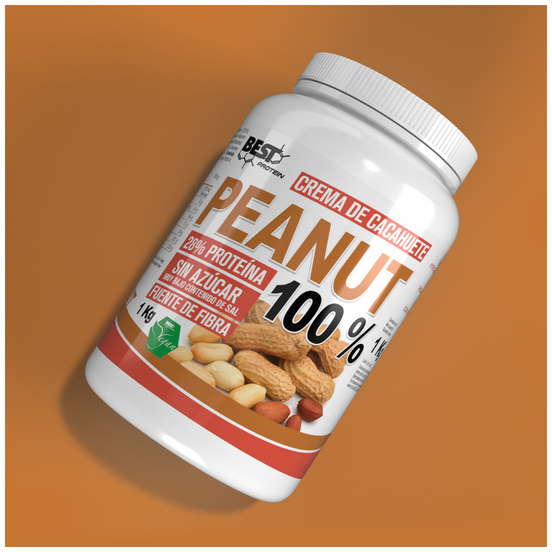 PEANUT 100% es una fuente de proteína vegetal. También tiene un alto contenido en fibra que mejora el tránsito intestinal, se absorbe más lentamente y da una mayor sensación de saciedad. Es rico en vitamina E que tienen funciones antioxidantes e inmunológicas. Además, aporta magnesio, que participa en varias rutas metabólicas y en el funcionamiento de órganos vitales y contracción nerviosa.
