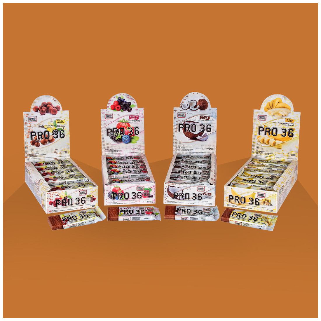 PRO 36 te ayuda a conseguir todos tus requerimientos proteicos en su formato más práctico, para que puedas utilizarlos como tentempié en cualquier lugar.
