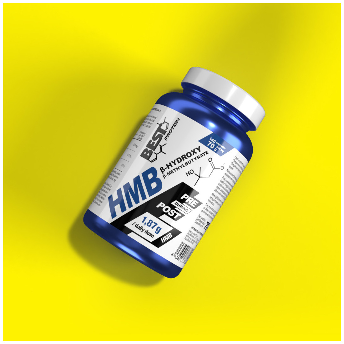Envío GRATIS en pedidos de +20€HMB o hidroxi-metilbutirato es un compuesto producido a partir de la leucina. Se presenta en su forma de sal cálcica (Calcio HMB) ya que esta es su forma estable (2). La leucina es un aminoácido esencial que forma parte de los aminoácidos ramificados o BCAA y que participa en la síntesis de proteínas musculares. Solo el 5% de la leucina es transformada a HMB y es por esto que la suplementación con HMB es más eficaz (1).