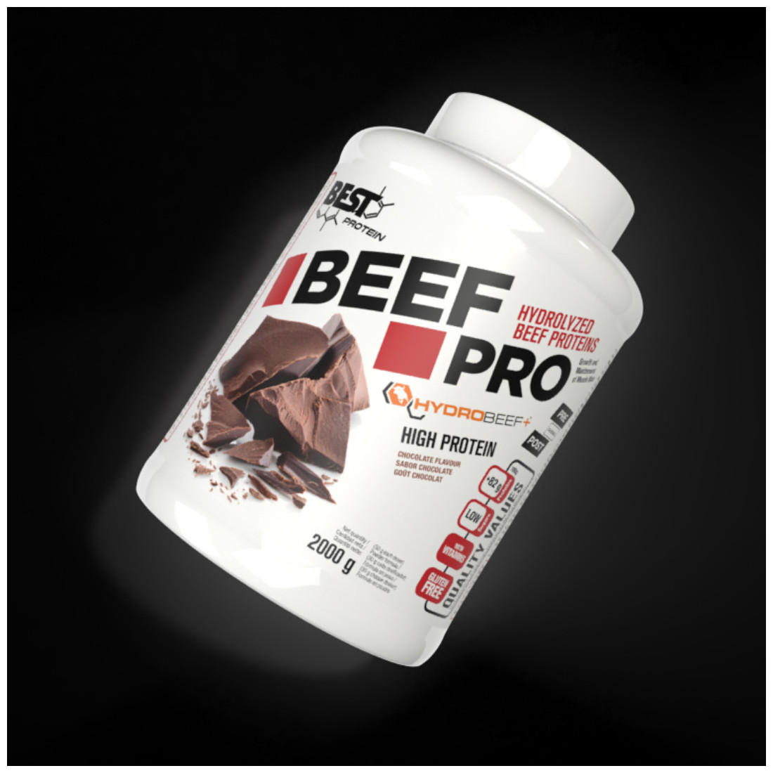 BEEF PRO es un producto ideal para cubrir tus requerimientos proteicos y es apto para intolerantes a la lactosa. Además, produce un aumento del rendimiento deportivo y de la recuperación muscular, puesto que se trata de un producto de absorción rápida y fácil digestión.